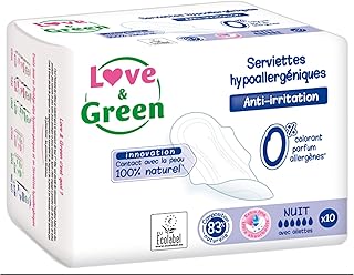 Love & Green Serviettes Hypoallergéniques Nuit 10 Serviettes