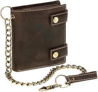 Biker Portefeuille pour Homme et Femme avec la chaîne Vintage-Style, Cuir véritable, Marron