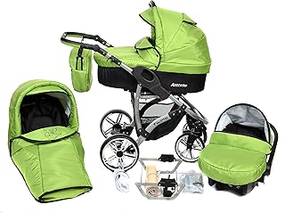 Sportive X2, 3-in-1 Travel System incl. Baby Pram with Swivel Wheels, Car Seat, Pushchair & Accessories (3-in-1 Travel System, Black & Green)