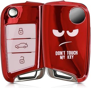 kwmobile Accessoire Clef de Voiture Compatible avec VW Golf 7 MK7 3-Bouton - Coque de Protection en Silicone Don't Touch My Key Blanc-Rouge Haute Brillance