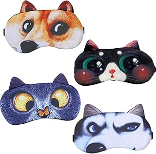 Animal Sommeil Masque pour Yeux des Animaux Masque de Sommeil Mignon Animal Sommeil Masque Doux Masque avec Sangle Réglable pour Dormir Eyepatch de repos Masque Masque de Nuit 4PCS