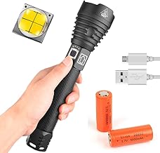 Lampe de Poche LED 9000 Lumen Lampe Torche Super Lumineuse, Puissante Rechargeable USB Lampe Tactique 5 Mode étanche Torche pour Camping, Randonnée, Militaire