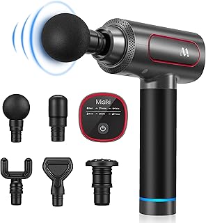Misiki Pistolet de Massage Musculaire, Masseur à Percussion des Tissus Profonds avec 5 Têtes de Massage et 6 Modes, Appareil de Massage Électrique Portable Sans Fil avec Mallette de Transport