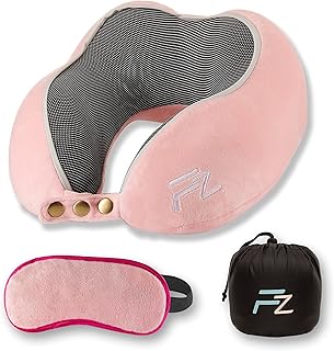 FLOWZOOM® Comfy Kids Coussin de Voyage Enfant | Petit Coussin a memoire de Forme | Oreiller Enfant pour Voiture, Train, Avion | Appui Tete Voiture Enfant et Masque pour Dormir | Rosé, Petit