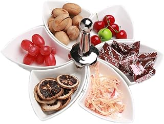 JASNO Plateau apéritif en Porcelaine de 7 pièces avec Plat de Service et Assiette Plate en Un Morceau et Bol Plongeant de 6 Morceaux pour Fruits, Fruits secs et Desserts