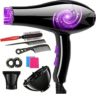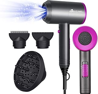 Basuwell Sèche-cheveux ionique professionnel 1800 W Sèche-cheveux Salon Sèche-cheveux 3 températures et vitesse du vent, avec diffuseur et buses de styling, idéal pour les déplacements et les familles