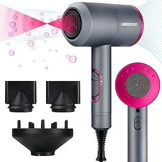 UBEGOOD 2000W Sèche Cheveux, Sèche Cheveux Ionique Professionnel Hair Dryer Soins des Cheveux à température constante 3 Vitesses avec Contient 2 Buses et 1 diffuseur Convient pour Salon, Famille